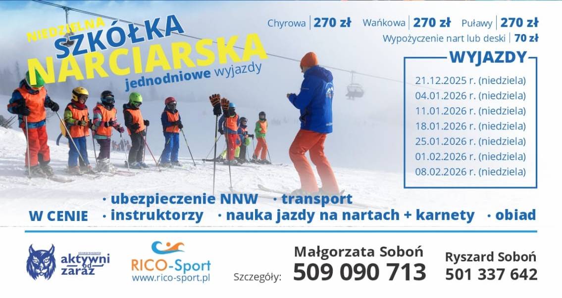 ZIMA 2026 – OBÓZ ZAKOPANE – KOŚCIELISKO – OFERTA POBYTU Obóz zimowy Zakopane – Kościelisko Termin pobytu: 22.02.2026 – 28.02.2026 WYJAZD: 22.02.2026 r. (niedziela) Rzeszów parking sklepu MAR… Czytaj dalej »ZIMA 2026 – OBÓZ ZAKOPANE – KOŚCIELISKO